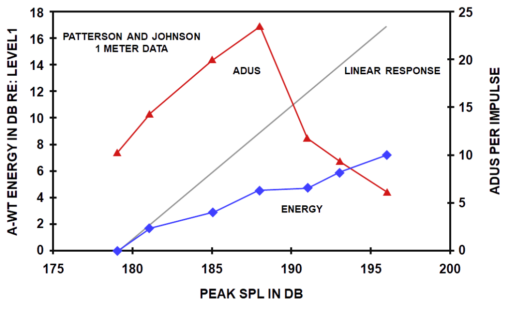 There is a basic plausibility to this argument; however, it is based on at least two critical assumptions: (1) that the hearing protectors worn by the subjects were consistent from dataset to dataset and linear in their effects with respect to amplitude and (2) that as they arrive at the ear, the impulses within a data set differ in no important way (other than in peak level). Neither of these assumptions is supported by the data with the result that traditional expectations just don’t apply.