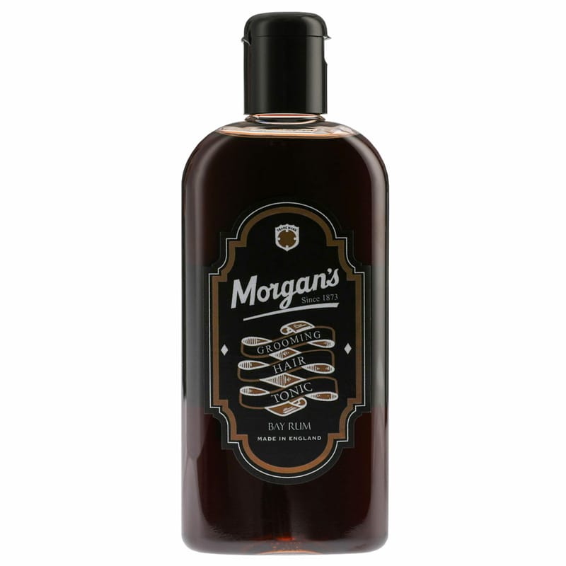 Made with Wheat Protein, Coffee and Hop Extract to stimulate the hair and scalp. Caffeine and Hops contain essential oils and nutrients that deeply penetrate the scalp to help promote hair growth and healthy hair. Wheat Protein helps to strengthen and support the hair’s natural structure, creating a fuller appearance, with a natural shine. Infused with an authentic Bay Rum fragrance, our exclusive blend will add body while it conditions and moisturises. Morgan’s Bay Rum Hair Tonic is a professional barber grade pre-styler that you can apply to the hair and scalp before applying a Morgan’s styling product, as it revitalises and conditions the hair without stripping away all of the natural oils.